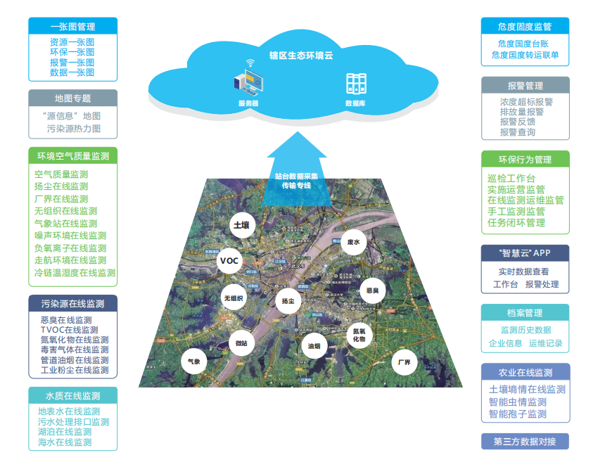 奥斯恩大数据云平台以智慧平台大数据分析研判手段,及时预测生态环境发展趋势,发出预警信息,变被动应急为主动防控,开展远程非现场执法,保障合规企业的生产经营秩序,针对异常信息数据,精准定位打击环境违法行为,全面提升区域风险监测预警和防控能力。实现污染底数“摸得清”、分析预警“反应快”、实战运用“功能强”。形成了“预测一预警一响应”全链条实战化运行模式。