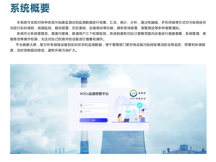 TVOC大数据智能云平台集数据云监管云存储,大数据分析,环境预判为一体,切合项目实际应用需求,该平台具备很大的灵活性,可将网格化环境监管/VOCs挥发性有机物监管/冷链监测监管链接到一起集成一个综合型的平台,也可以将任一平台独立部署;云平台以污染物在线监测为基础,充分 总量管理、总量控制的原则,包含了环境管理信息系统的许多重要功能,充分满足各级 环境信息网络的建设要求,支持各级 环境监理与环境监测工作,适应不同层级用户的管理需求,针对不同的项目实际需求推出多款灵活的服务方式。